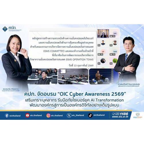 คปภ. จัดอบรม OIC Cyber Awareness 2569 เสริมเกราะบุคลากร รับมือภัยไซเบอร์ยุค AI Transformation พัฒนาองค์กรสู่การเป็นองค์กรดิจิทัลอย่างเต็มรูปแบบ