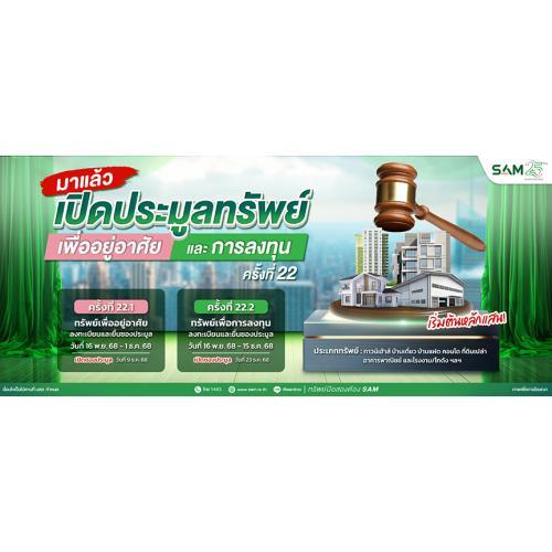 SAM เปิดประมูลที่ดินแปลงใหญ่เมืองปทุมฯ เกือบ 60 ไร่ พร้อมทรัพย์เพื่อลงทุนและที่อยู่อาศัยทำเลทอง มูลค่ารวมกว่า 580 ลบ.