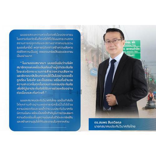 สมาคมประกันวินาศภัยไทย ห่วงใยประชาชน ยืนยันระบบประกันวินาศภัยแข็งแกร่ง พร้อมดูแลผู้เอาประกันภัยต่อเนื่องและทันท่วงที