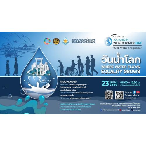 สำนักงานทรัพยากรน้ำแห่งชาติ ขอเชิญทุกท่านเข้าร่วมงาน วันน้ำโลก ประจำปี 2569 ภายใต้แนวคิด Water and Gender: Where Water Flows, Equality Grows